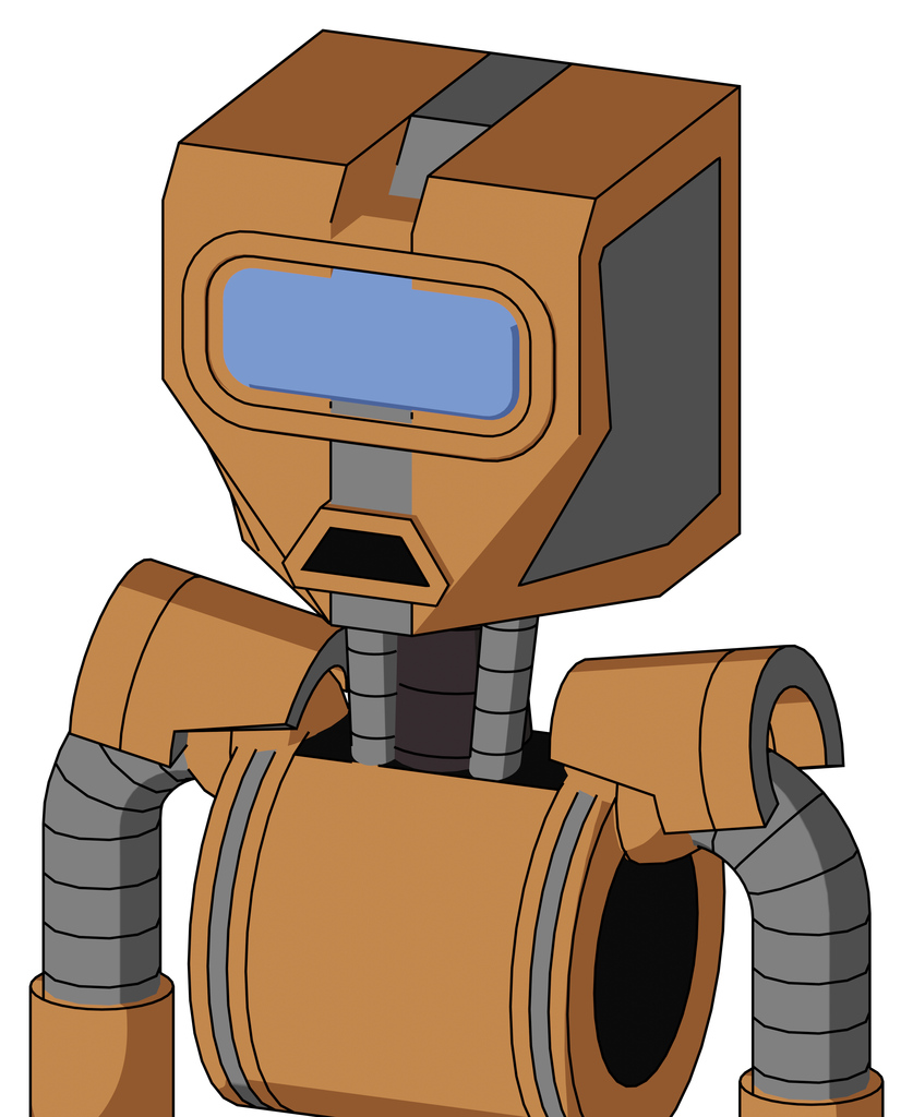 Peach Mech With Mechanical Head And Sad Mouth And Large Blue Visor Eye