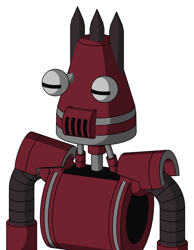 Red Droid With Cone Head And Speakers Mouth And Two Eyes And Three Dark Spikes