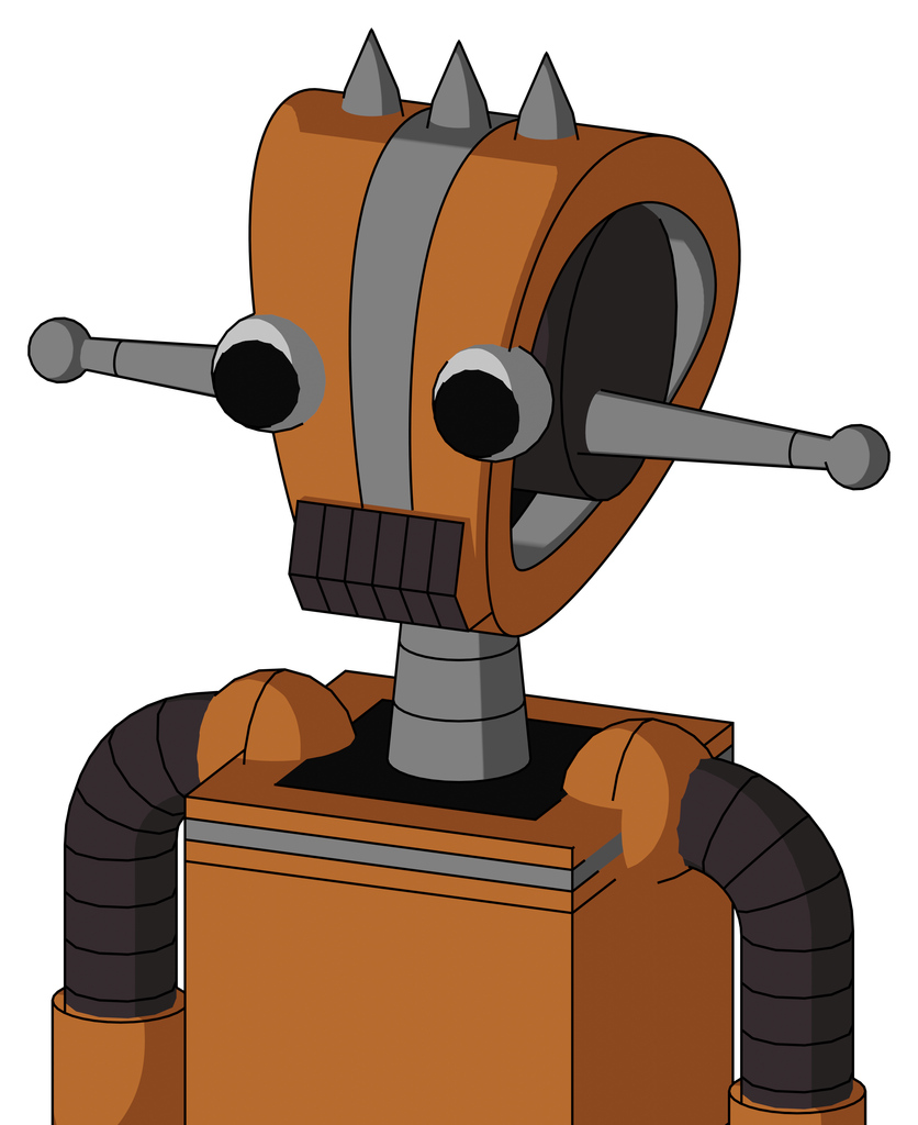 Orange Robot With Droid Head And Dark Tooth Mouth And Two Eyes And Three Spiked