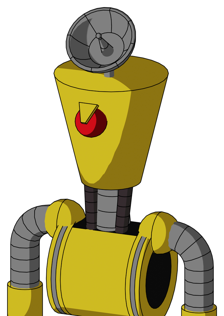 Yellow Droid With Cylinder-Conic Head And Angry Cyclops And Radar Dish Hat