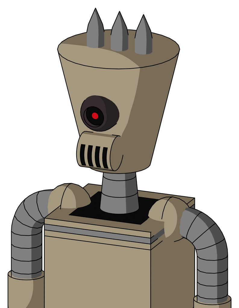 Tan Robot With Cylinder-Conic Head And Speakers Mouth And Black Cyclops Eye And Three Spiked