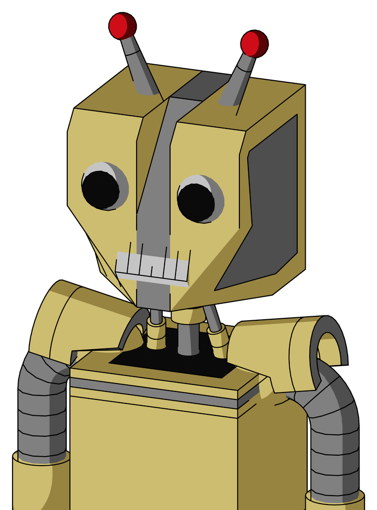 Yellow Droid With Mechanical Head And Teeth Mouth And Two Eyes And Double Led Antenna