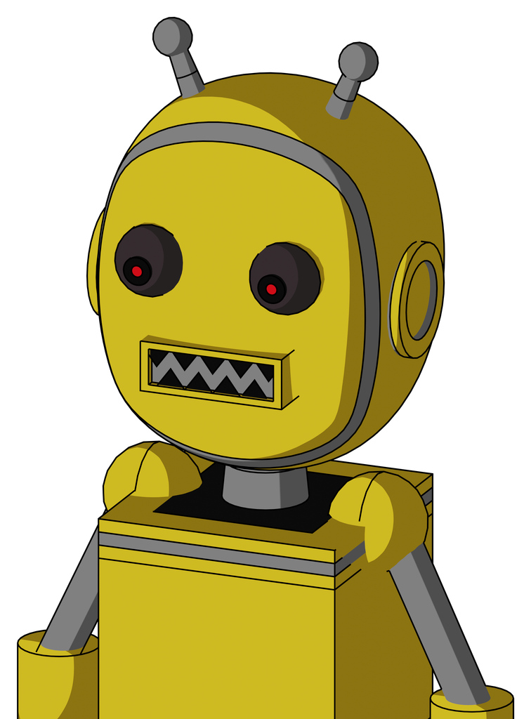 Yellow Droid With Bubble Head And Square Mouth And Red Eyed And Double Antenna