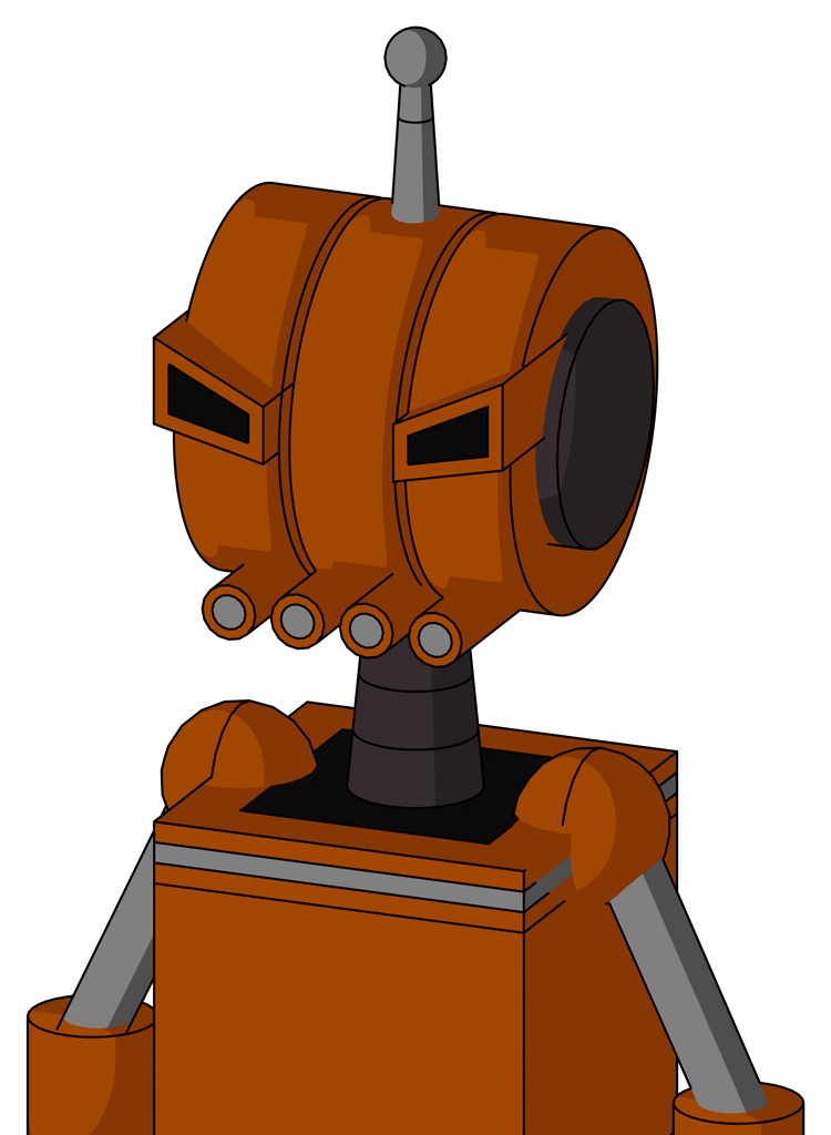 Redish-Orange Mech With Multi-Toroid Head And Pipes Mouth And Angry Eyes And Single Antenna
