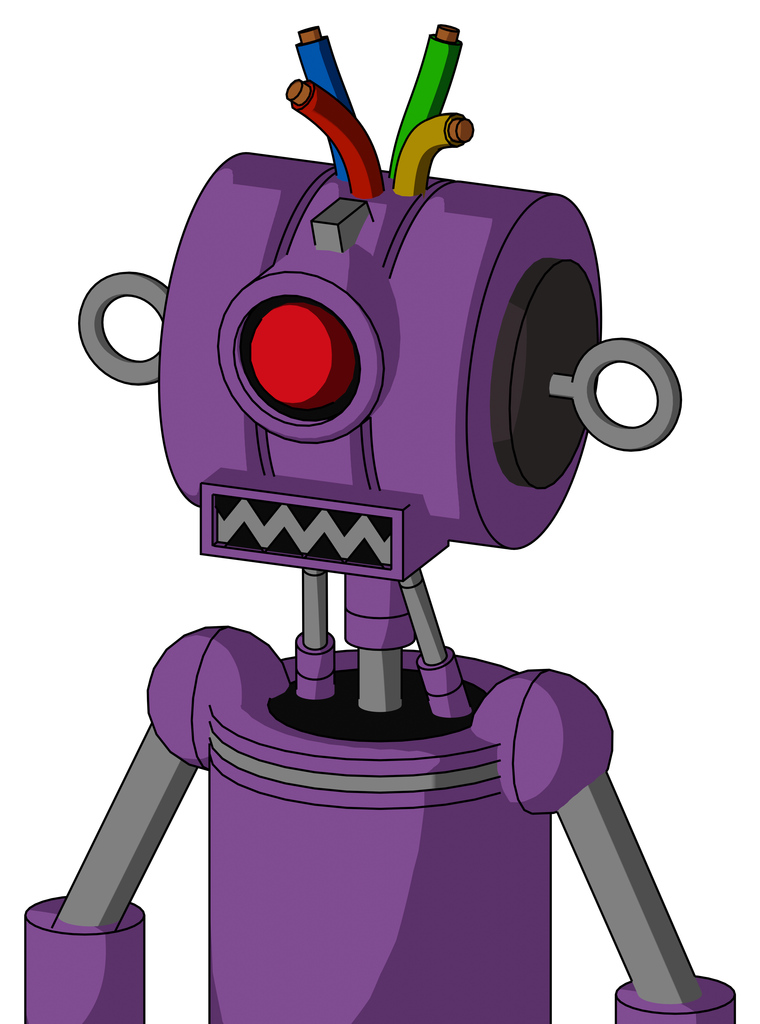 Purple Automaton With Multi-Toroid Head And Square Mouth And Cyclops Eye And Wire Hair