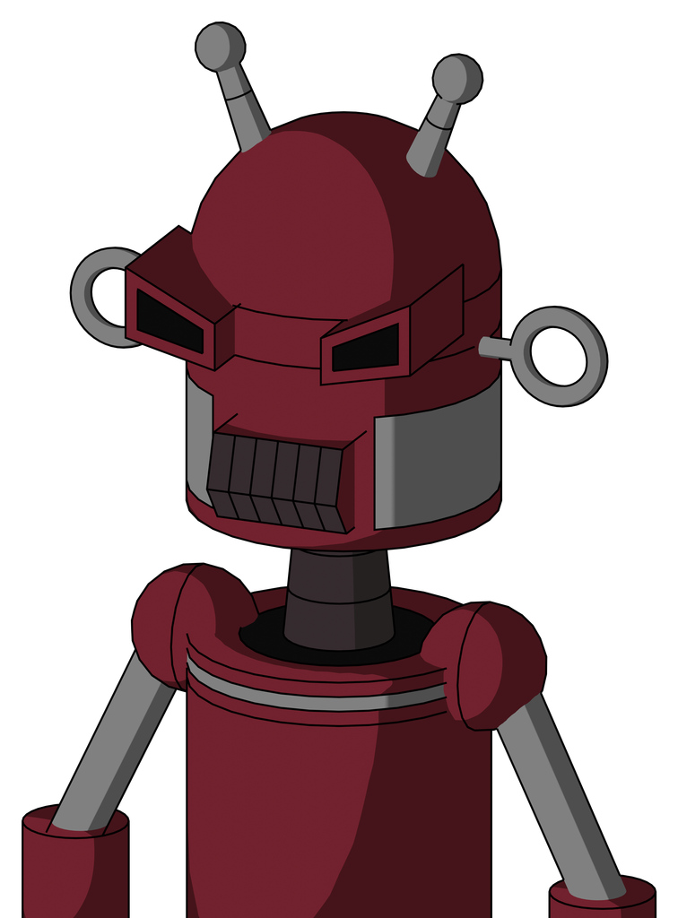 Red Droid With Dome Head And Dark Tooth Mouth And Angry Eyes And Double Antenna