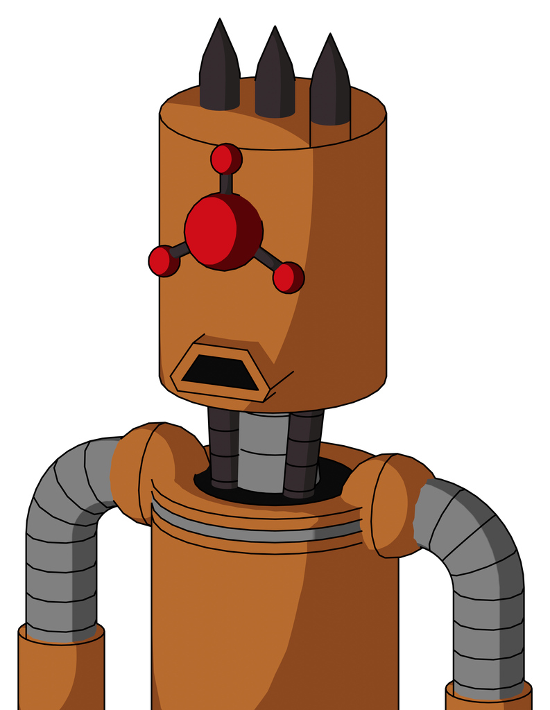 Orange Robot With Cylinder Head And Sad Mouth And Cyclops Compound Eyes And Three Dark Spikes