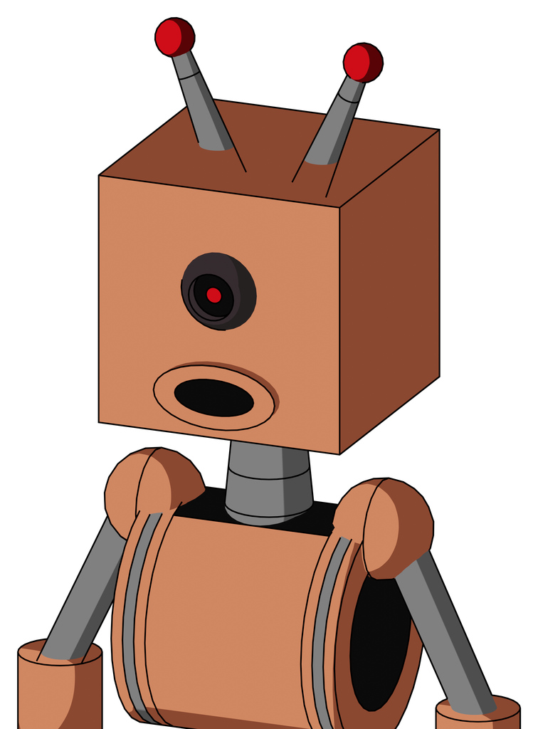 Peach Robot With Box Head And Round Mouth And Black Cyclops Eye And Double Led Antenna
