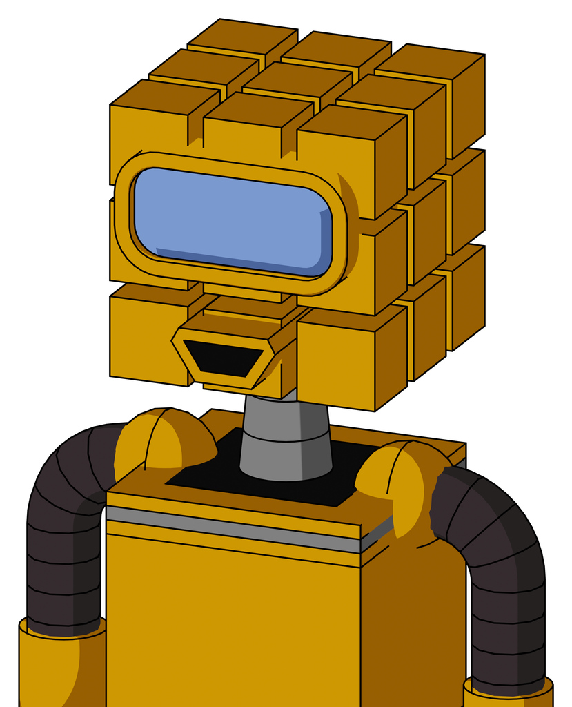 Yellow Robot With Cube Head And Happy Mouth And Large Blue Visor Eye