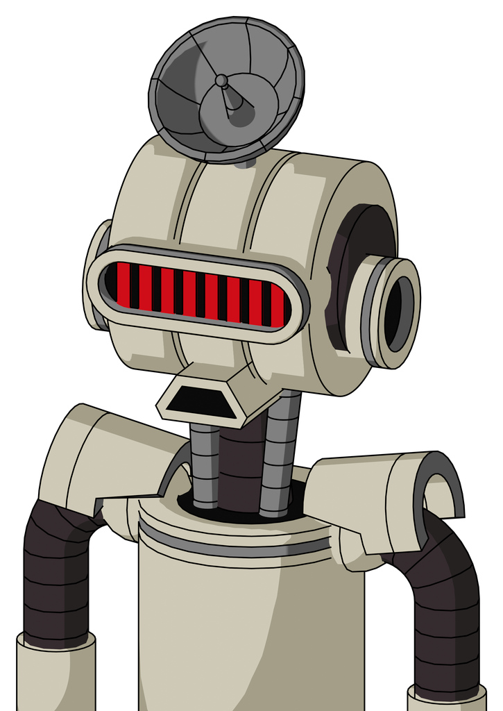 Tan Mech With Multi-Toroid Head And Sad Mouth And Visor Eye And Radar Dish Hat