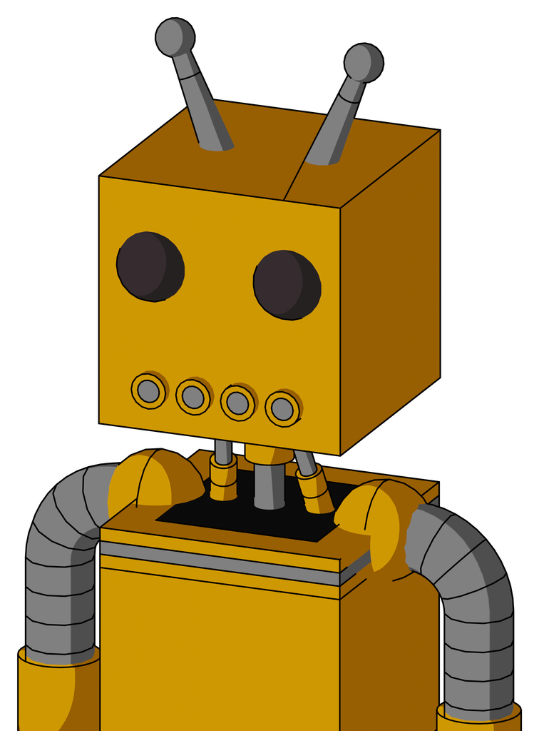Yellow Robot With Box Head And Pipes Mouth And Two Eyes And Double Antenna