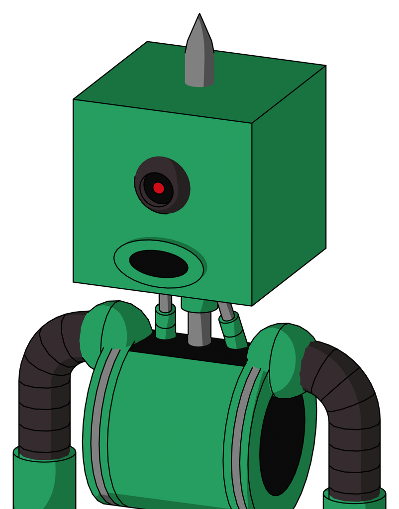 Green Automaton With Box Head And Round Mouth And Black Cyclops Eye And Spike Tip