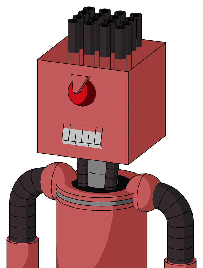 Pinkish Mech With Box Head And Teeth Mouth And Angry Cyclops And Pipe Hair