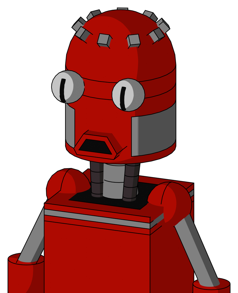Red Mech With Dome Head And Sad Mouth And Two Eyes
