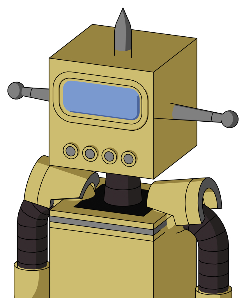 Yellow Droid With Box Head And Pipes Mouth And Large Blue Visor Eye And Spike Tip