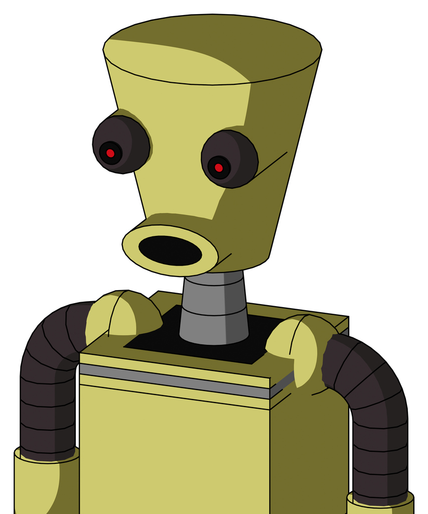 Yellow Robot With Cylinder-Conic Head And Round Mouth And Red Eyed