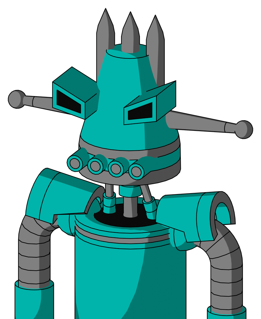 Greenish Robot With Cone Head And Pipes Mouth And Angry Eyes And Three Spiked
