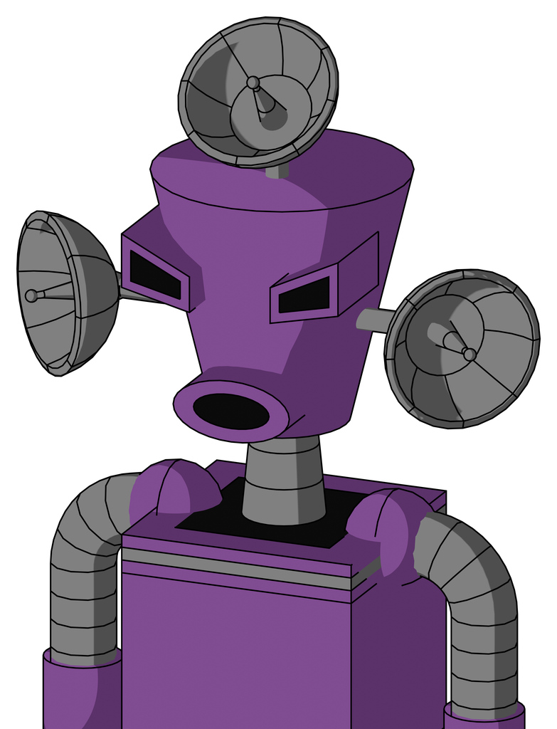 Purple Automaton With Cylinder-Conic Head And Round Mouth And Angry Eyes And Radar Dish Hat