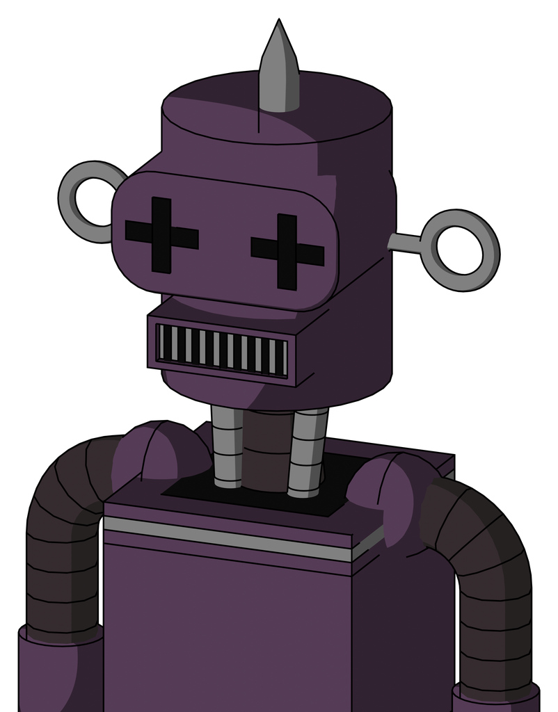 Purple Mech With Cylinder Head And Square Mouth And Plus Sign Eyes And Spike Tip