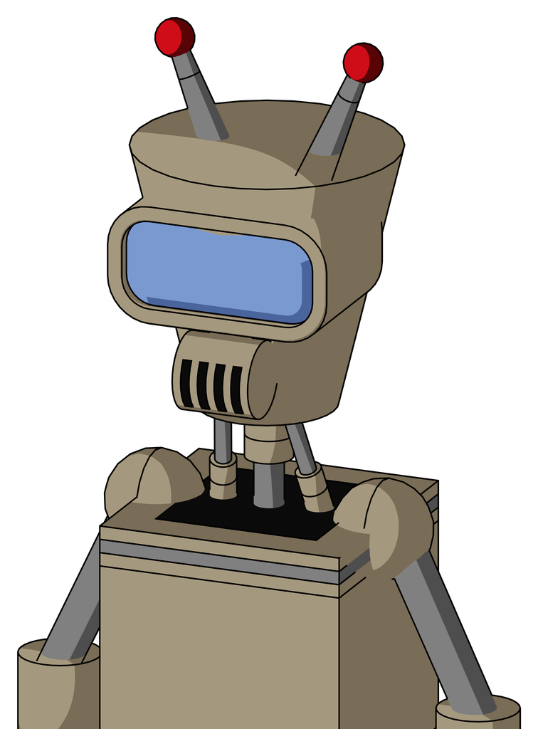 Tan Robot With Cylinder-Conic Head And Speakers Mouth And Large Blue Visor Eye And Double Led Antenna