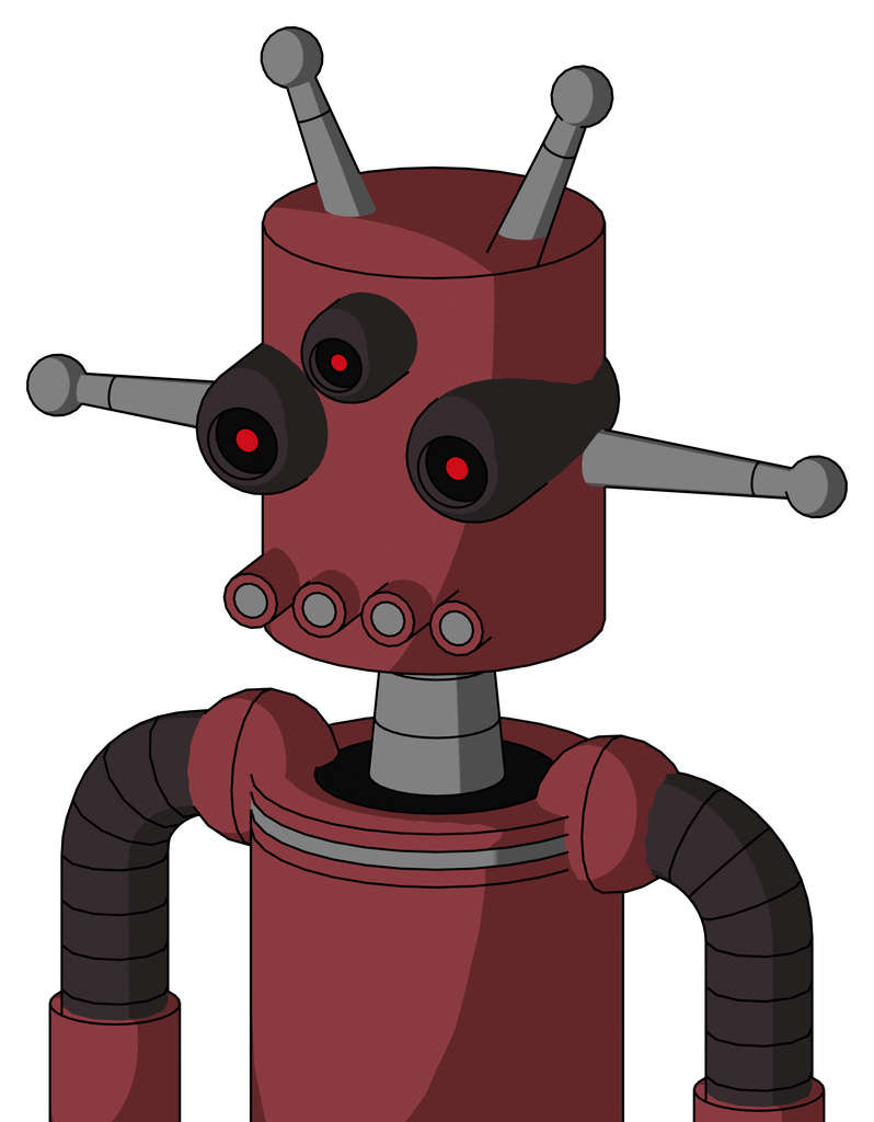 Red Mech With Cylinder Head And Pipes Mouth And Three-Eyed And Double Antenna