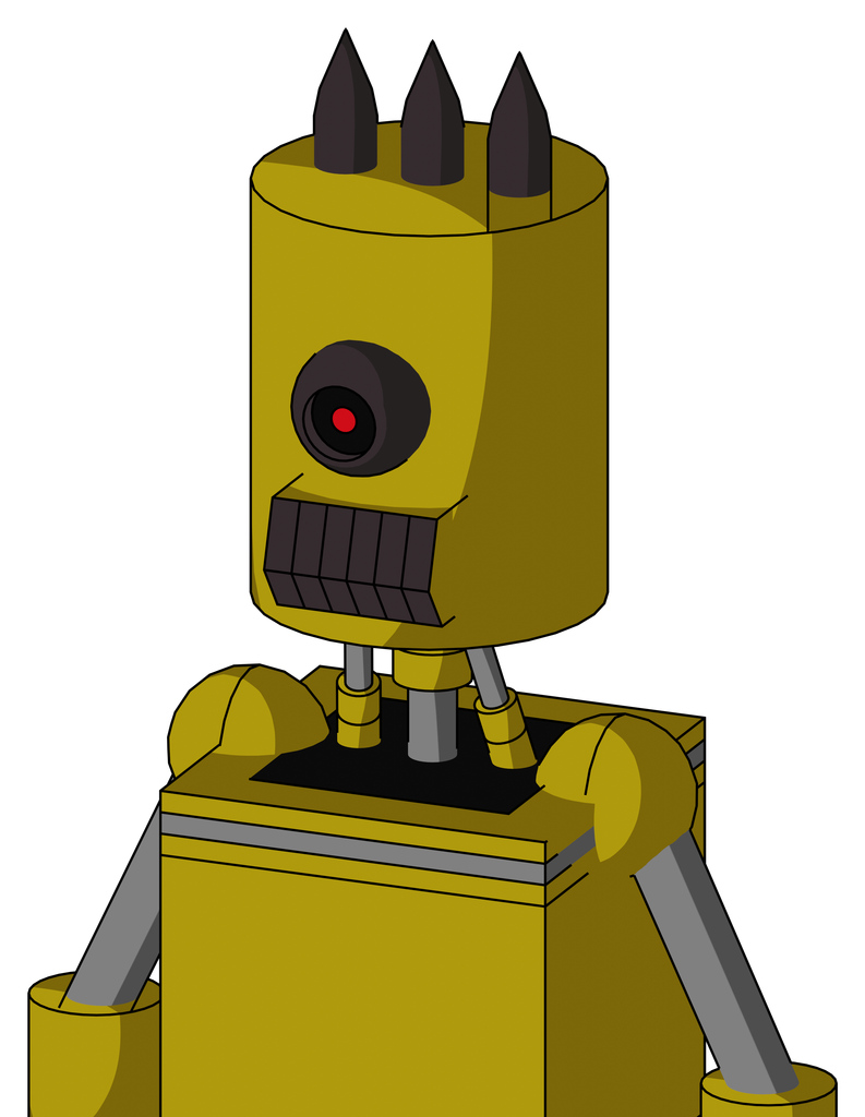 Yellow Automaton With Cylinder Head And Dark Tooth Mouth And Black Cyclops Eye And Three Dark Spikes