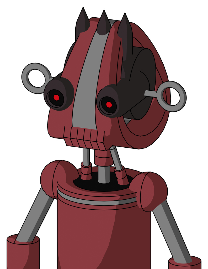 Red Mech With Droid Head And Toothy Mouth And Black Glowing Red Eyes And Three Dark Spikes