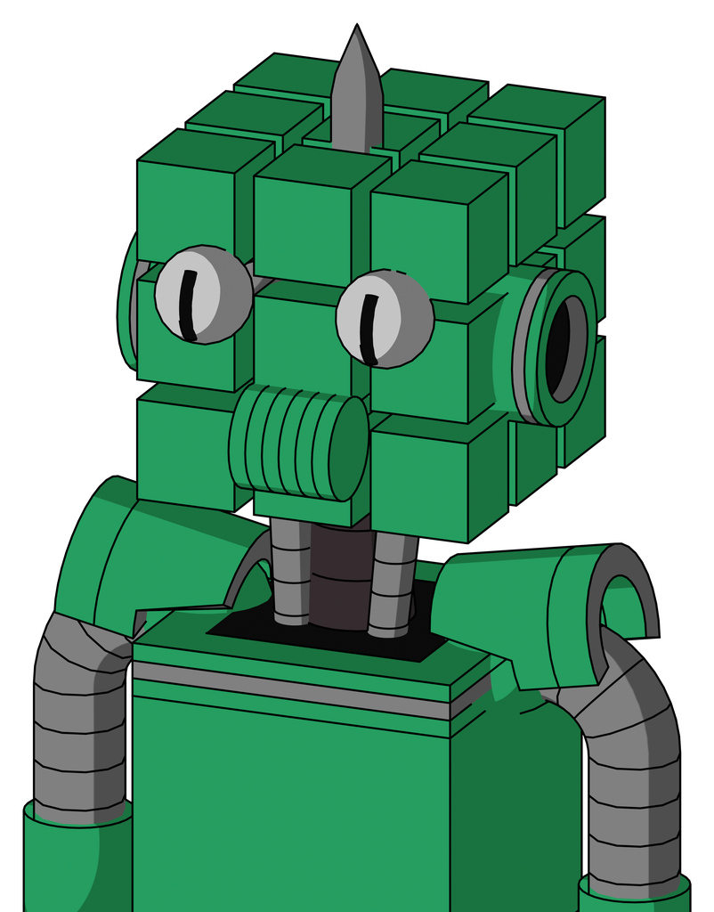 Green Automaton With Cube Head And Speakers Mouth And Two Eyes And Spike Tip