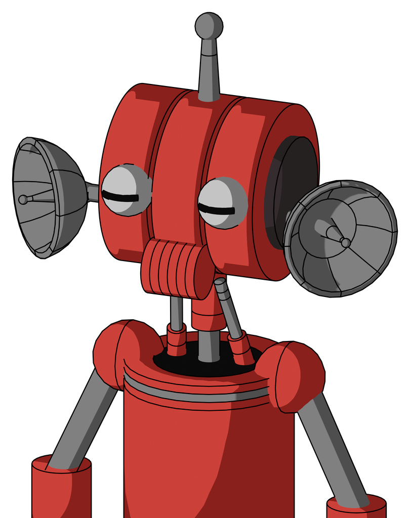 Tomato-Red Droid With Multi-Toroid Head And Speakers Mouth And Two Eyes And Single Antenna