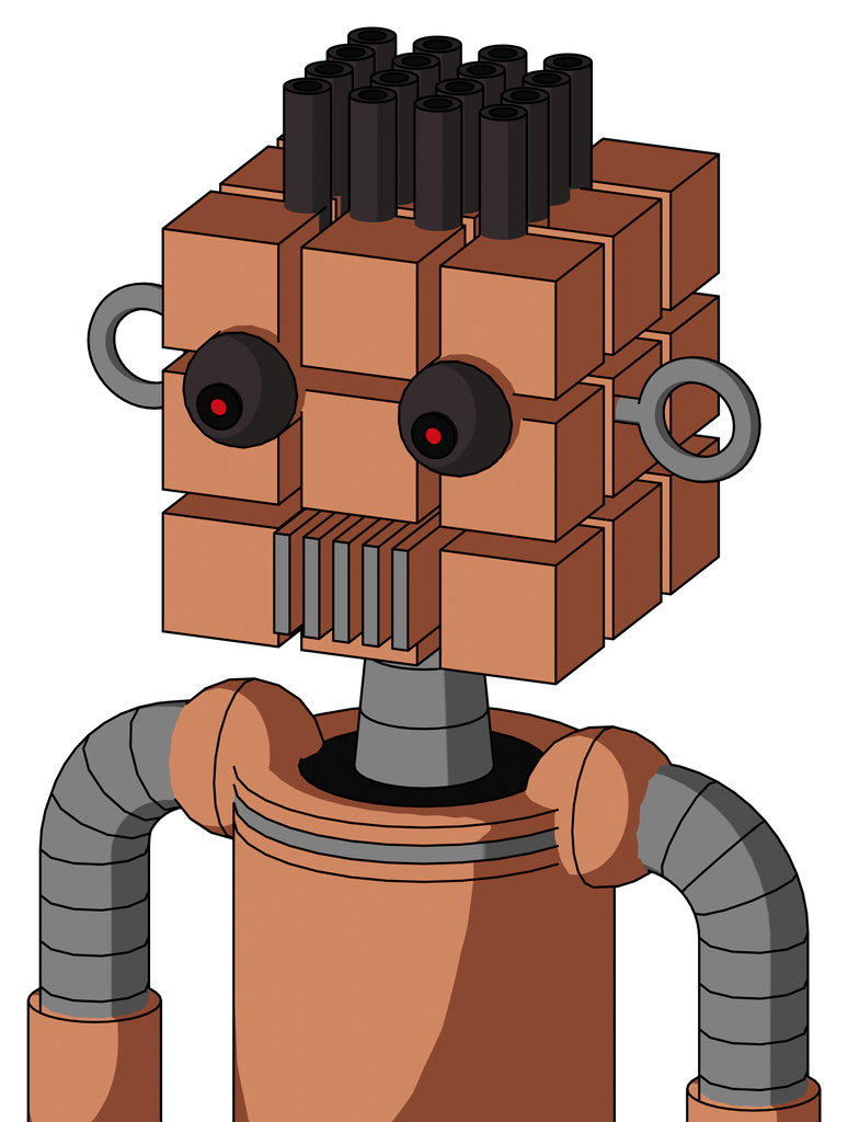 Peach Robot With Cube Head And Vent Mouth And Red Eyed And Pipe Hair