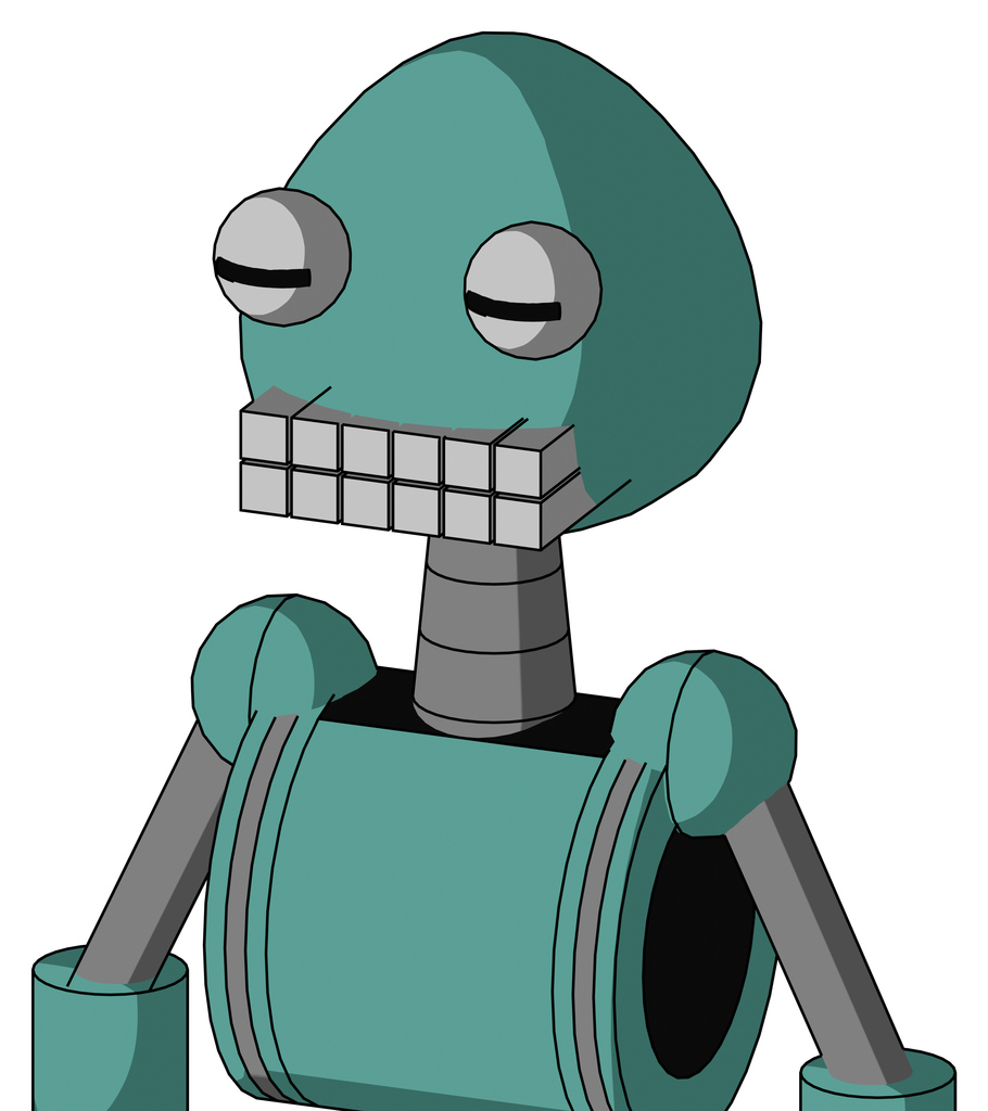 Greenish Mech With Rounded Head And Keyboard Mouth And Two Eyes