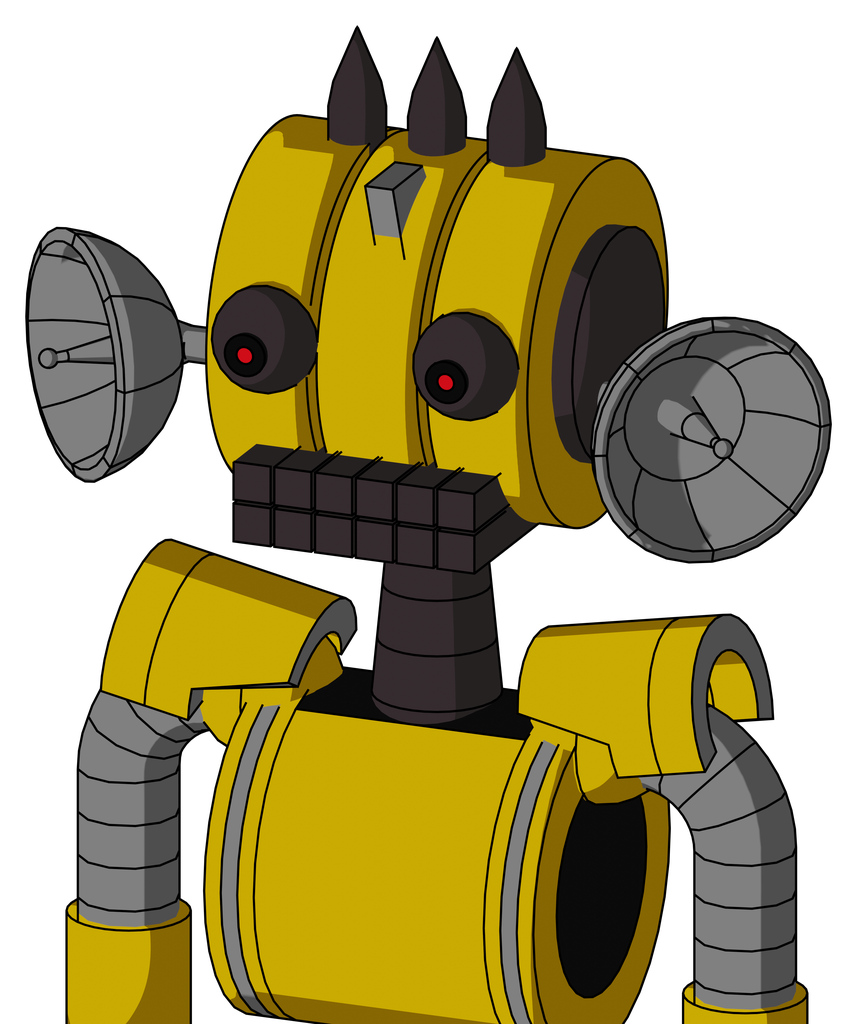 Yellow Droid With Multi-Toroid Head And Keyboard Mouth And Red Eyed And Three Dark Spikes
