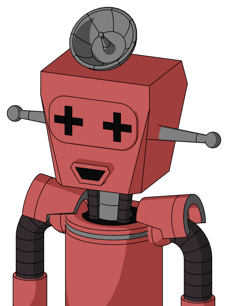 Pinkish Mech With Box Head And Happy Mouth And Plus Sign Eyes And Radar Dish Hat