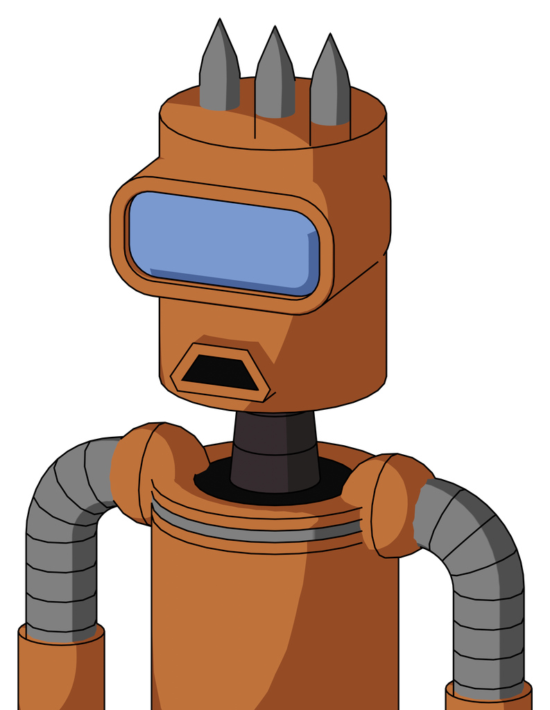 Orange Droid With Cylinder Head And Sad Mouth And Large Blue Visor Eye And Three Spiked