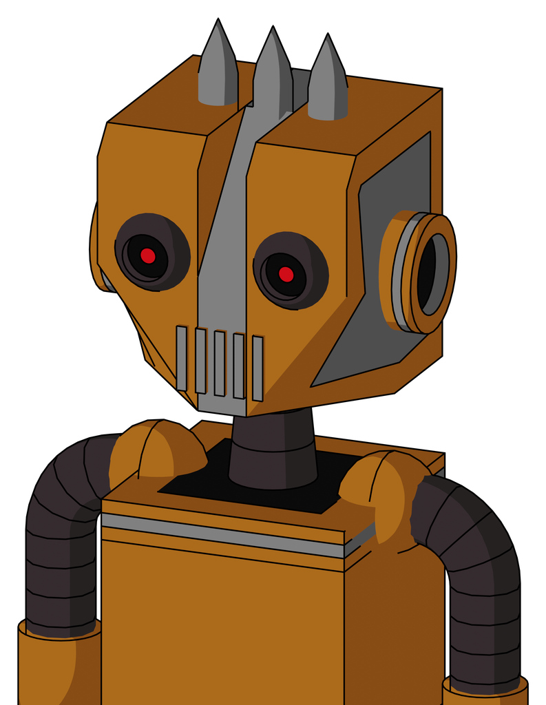 Dirty-Orange Mech With Mechanical Head And Vent Mouth And Black Glowing Red Eyes And Three Spiked