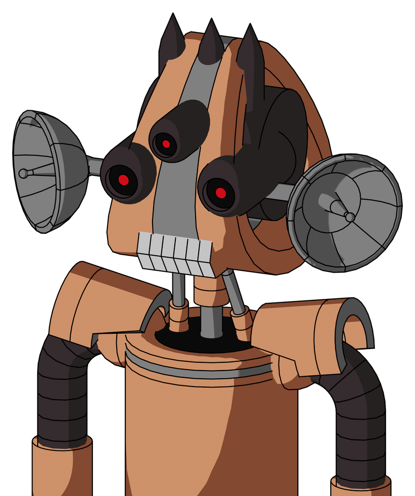Peach Robot With Droid Head And Teeth Mouth And Three-Eyed And Three Dark Spikes