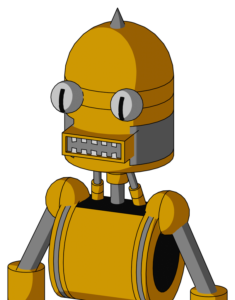 Yellow Robot With Dome Head And Square Mouth And Two Eyes And Spike Tip
