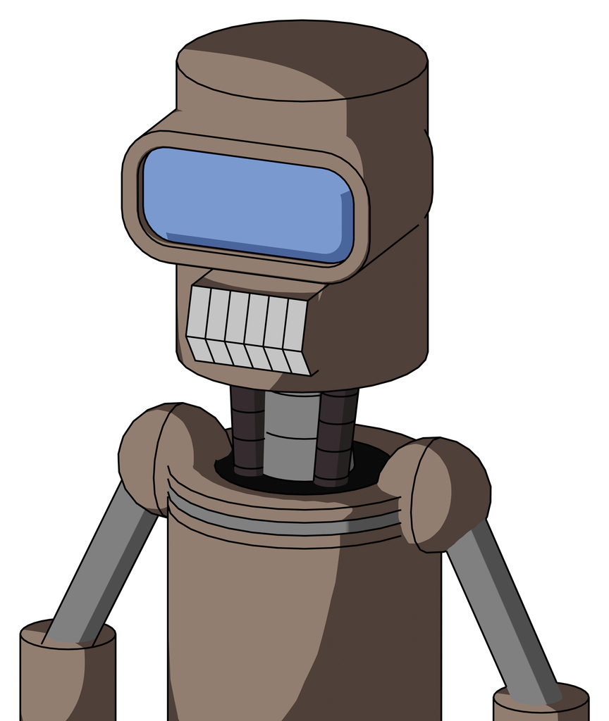 Gray Robot With Cylinder Head And Teeth Mouth And Large Blue Visor Eye