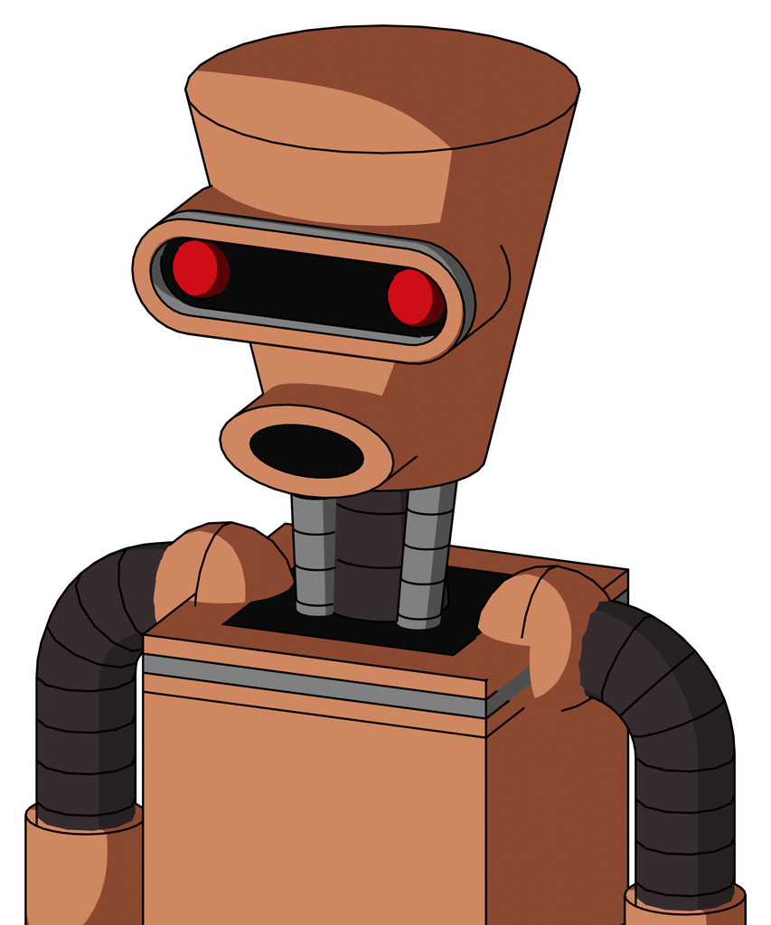 Peach Robot With Cylinder-Conic Head And Round Mouth And Visor Eye