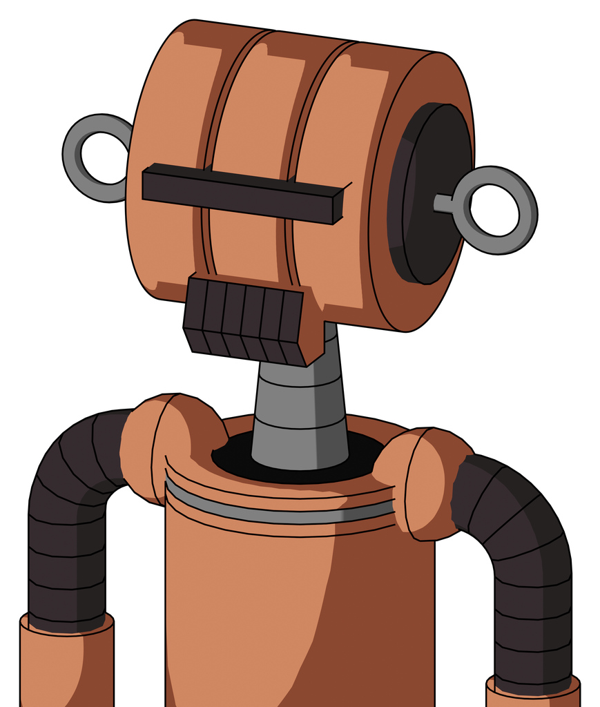 Peach Robot With Multi-Toroid Head And Dark Tooth Mouth And Black Visor Cyclops