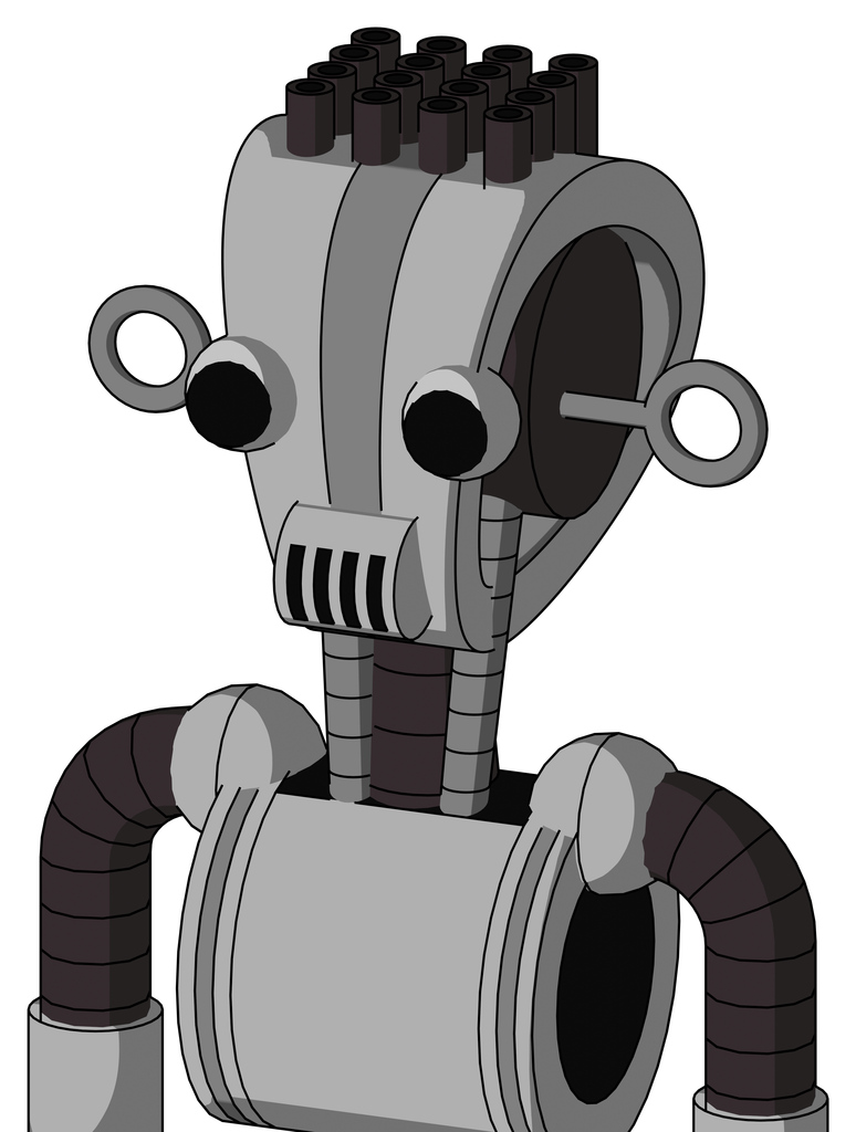 White Automaton With Droid Head And Speakers Mouth And Two Eyes And Pipe Hair