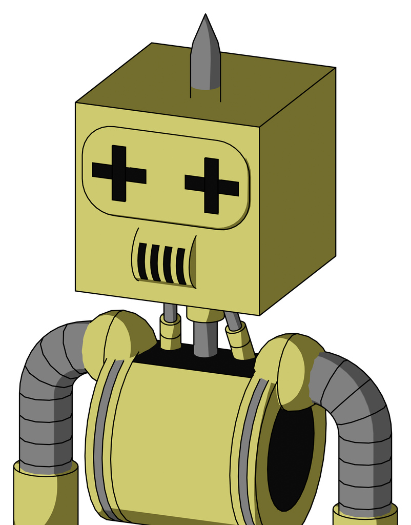 Yellow Robot With Box Head And Speakers Mouth And Plus Sign Eyes And Spike Tip