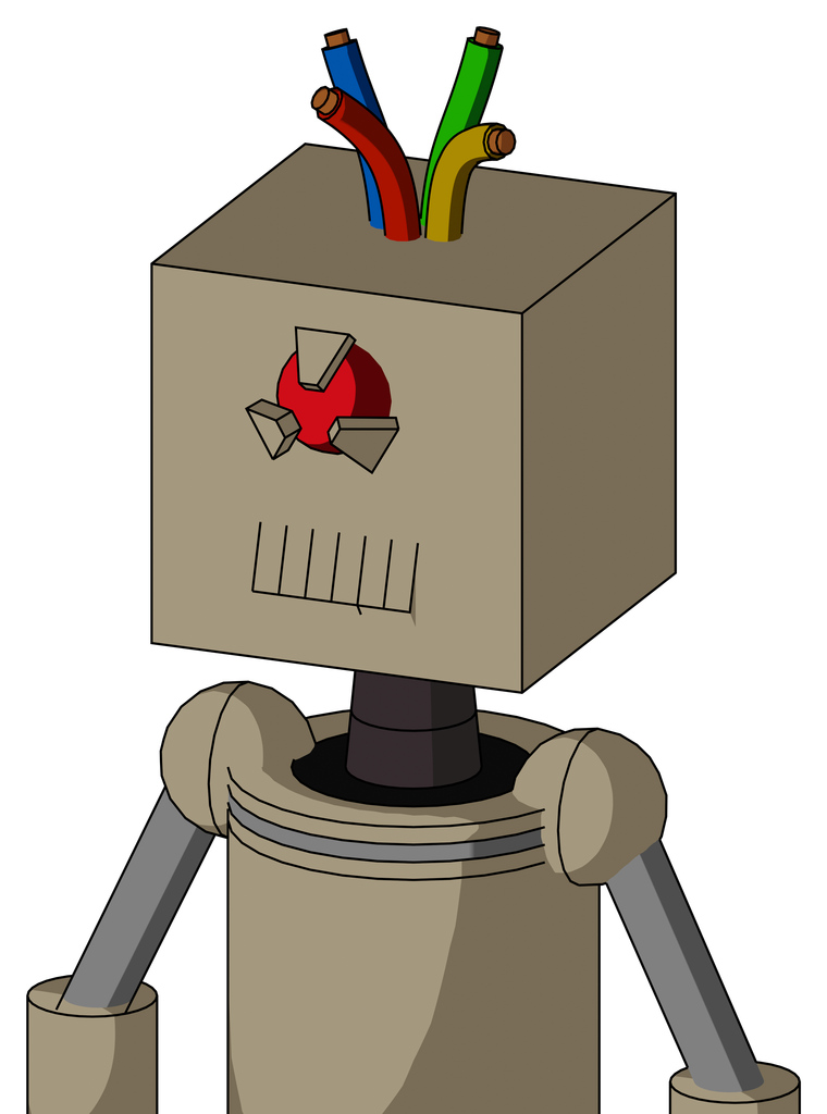 Tan Robot With Box Head And Toothy Mouth And Angry Cyclops Eye And Wire Hair