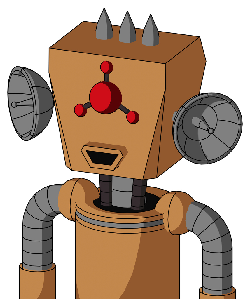 Peach Mech With Box Head And Happy Mouth And Cyclops Compound Eyes And Three Spiked