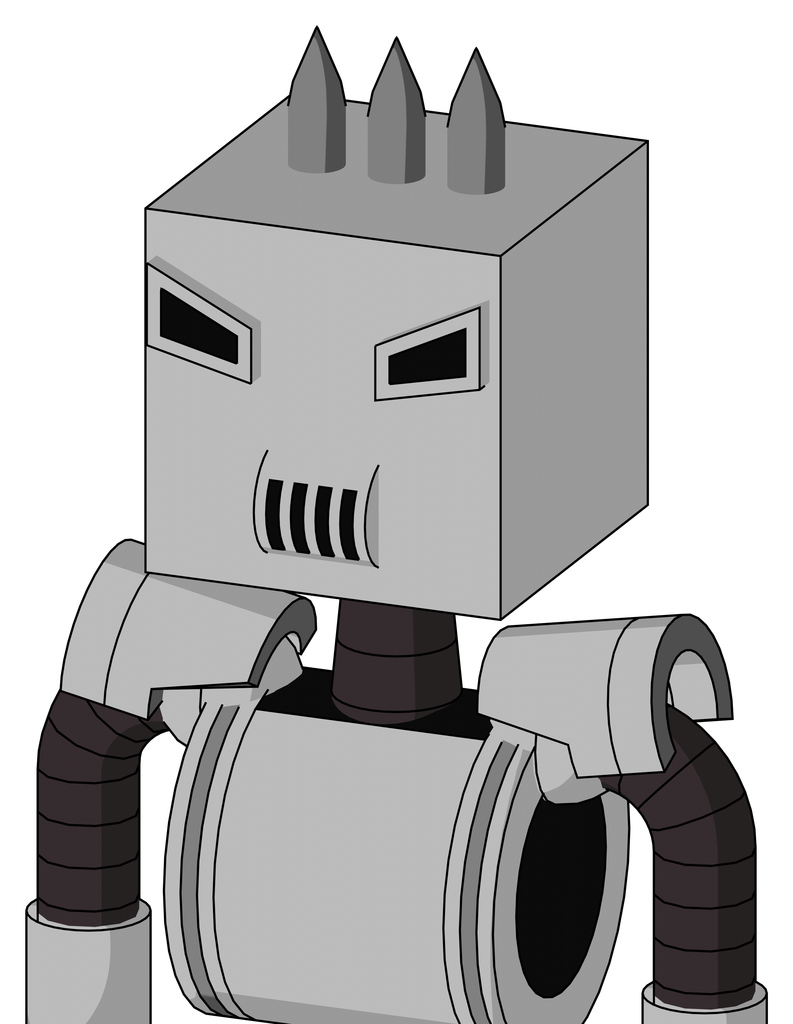 White Automaton With Box Head And Speakers Mouth And Angry Eyes And Three Spiked