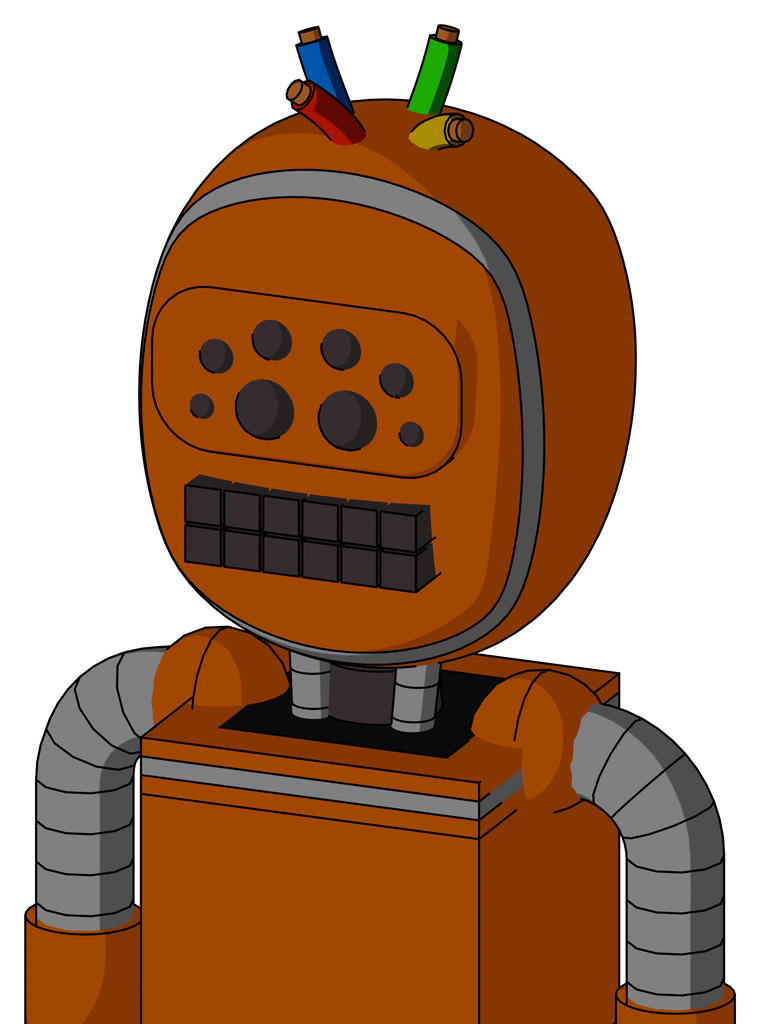 Redish-Orange Mech With Bubble Head And Keyboard Mouth And Bug Eyes And Wire Hair