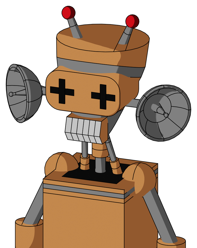 Peach Mech With Vase Head And Teeth Mouth And Plus Sign Eyes And Double Led Antenna