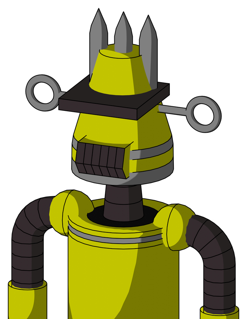 Yellow Robot With Cone Head And Dark Tooth Mouth And Black Visor Cyclops And Three Spiked