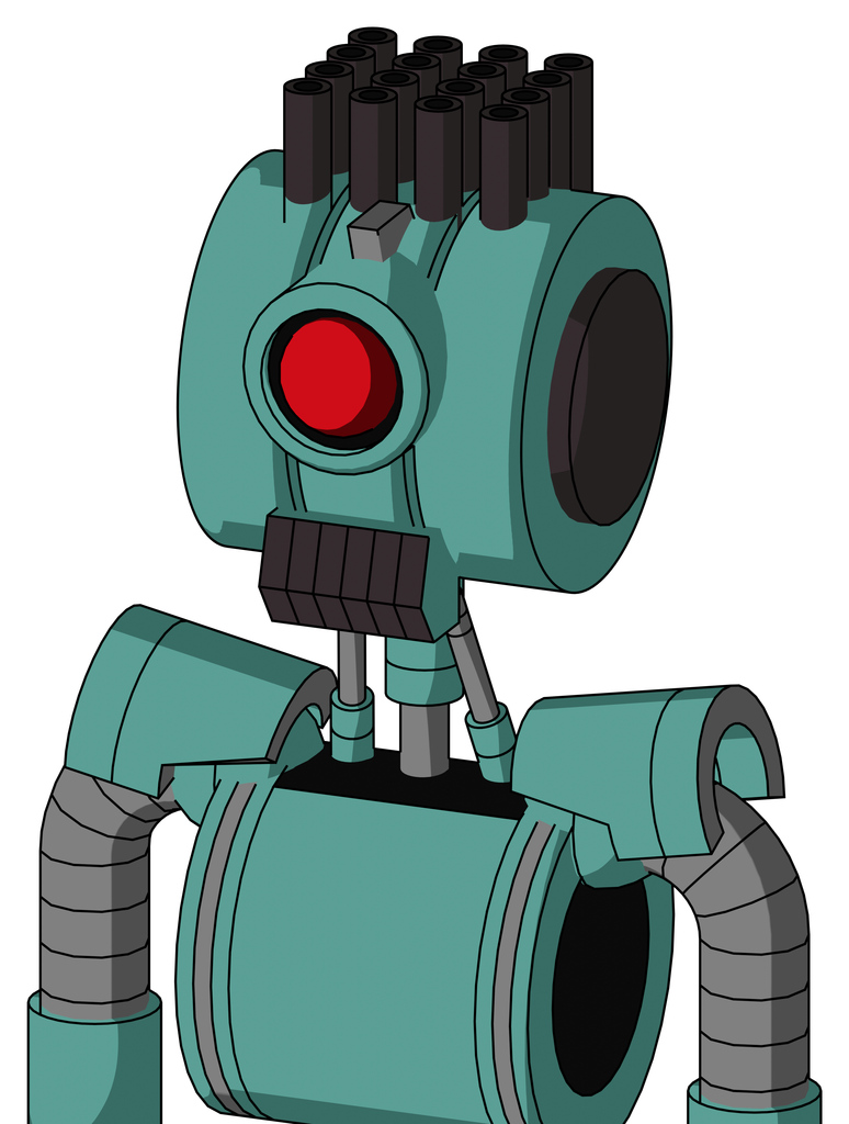 Greenish Mech With Multi-Toroid Head And Dark Tooth Mouth And Cyclops Eye And Pipe Hair