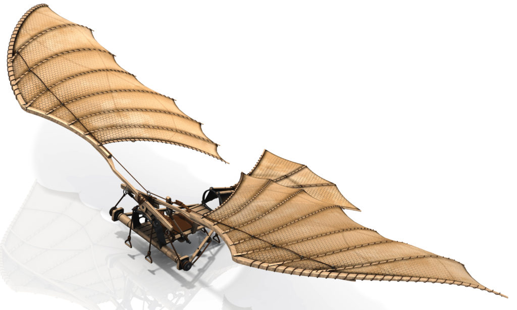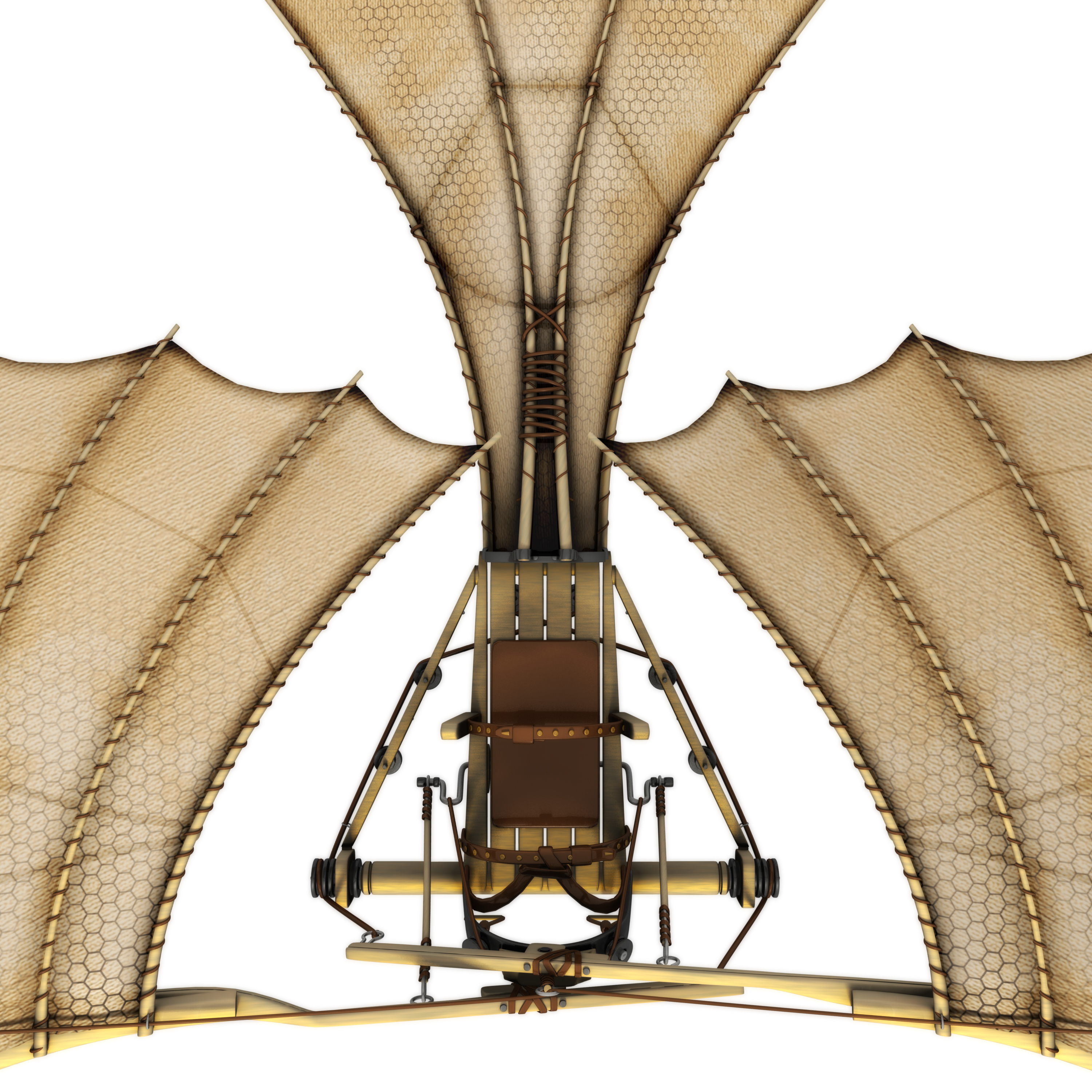 These are some old illustrations I did, now available for free. These are the Leonardo da Vinci Ornithopter series, rendered from different angles. See the End User License Agreement